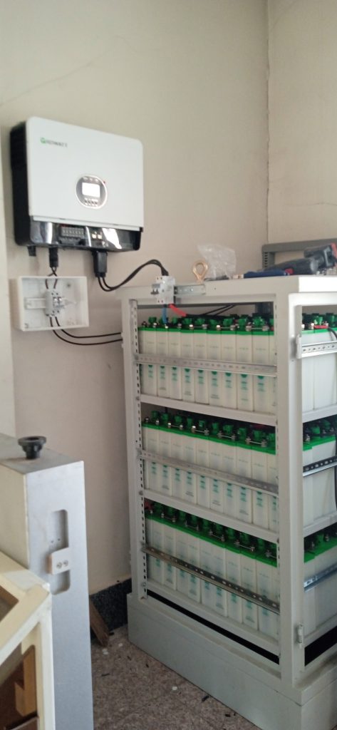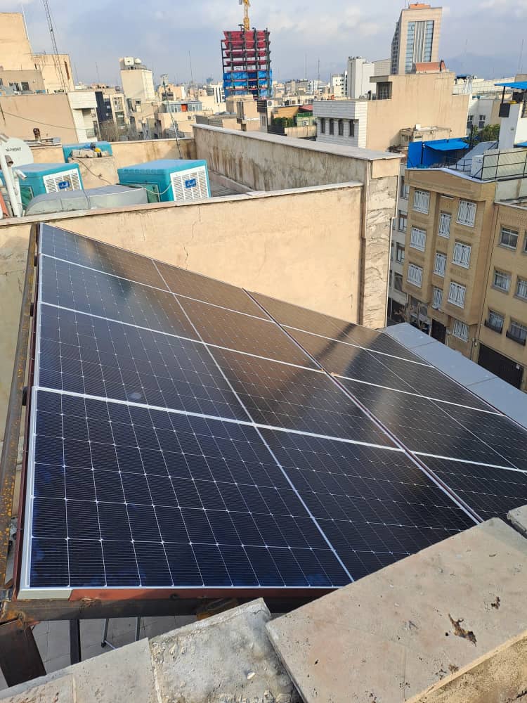 نصب تعداد هشت پنل 555 وات و یکدستگاه سانورتر شش کیلو وات برند growatt و تعداد 165 عدد باطری 1.1 ولتی برای رسیدن ب ولتاژ 48 ولت مورد نیاز دستگاه در منطقه تخت طاووس تهران